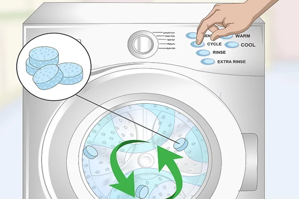 • Chạy chu kỳ giặt rỗng: Bạn có thể chạy chu kỳ giặt rỗng bằng cách thêm một lượng giấm trắng hoặc bột soda vào ngăn chất tẩy. Chạy máy ở nhiệt độ cao nhất cho phép để giúp loại bỏ vi khuẩn và mùi khó chịu.