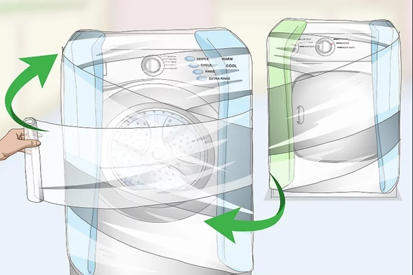 • Bảo vệ máy giặt : Bạn nên bảo vệ cửa máy giặt bằng cách sử dụng giấy bóng hoặc bọt biển và dính chúng bằng băng dính.